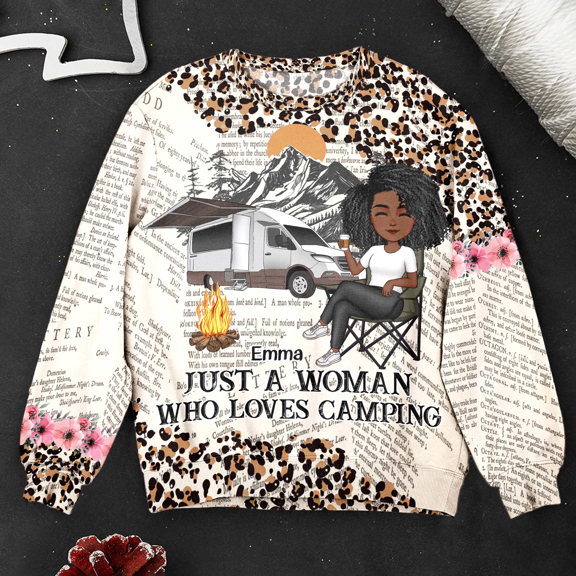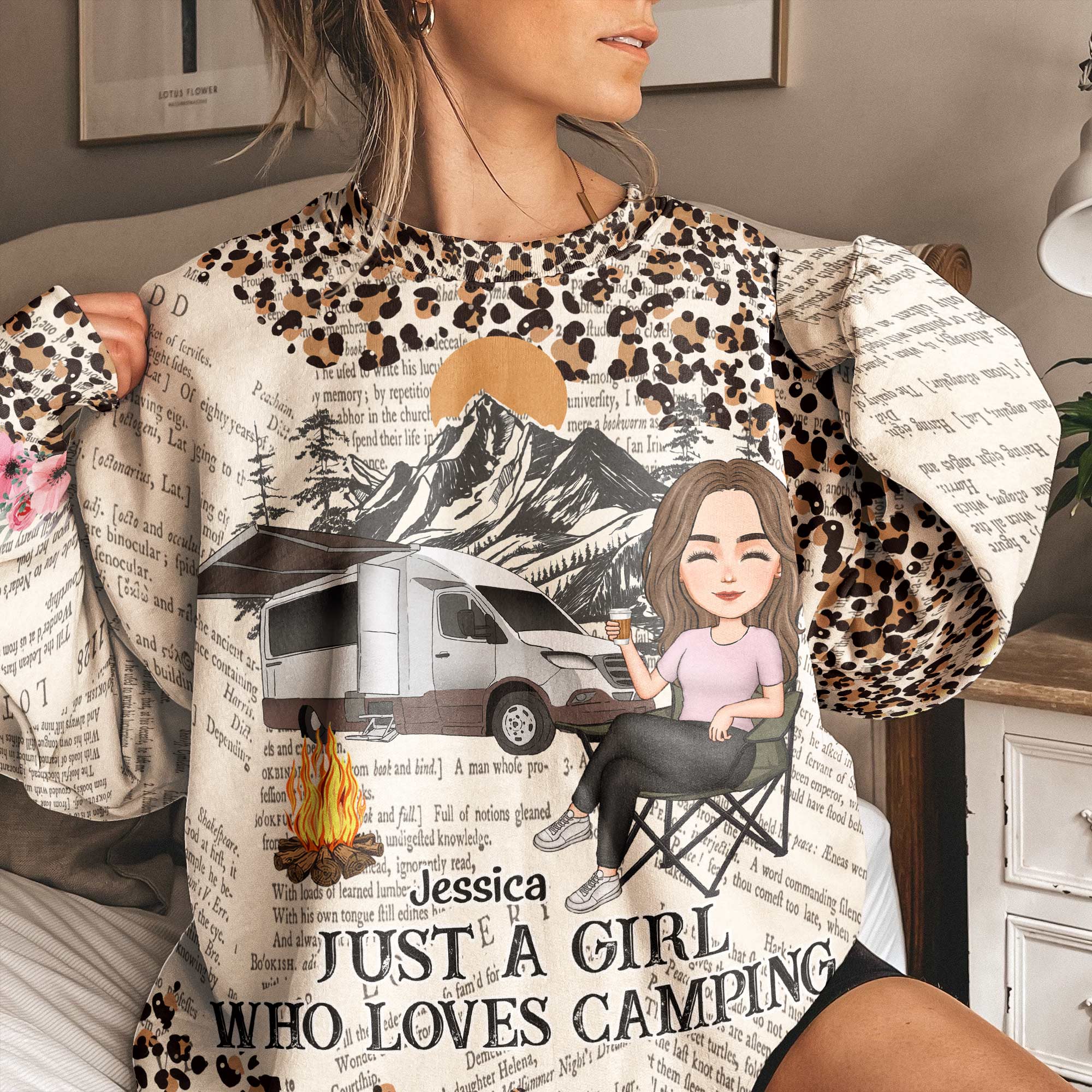 Just A Girl Who Loves Camping Leopard Pattern – Personalized 3D Printed Sweatshirt